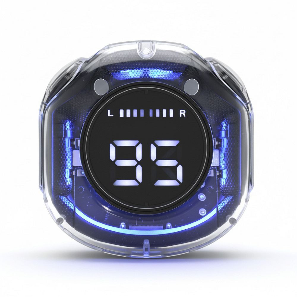 Az AirCrystal TX1 modell élénk, színes LED- világítással tűnik ki mind a töltőtok, mind maguk a fülhallgatók. Ez nemcsak stílusos kiegészítő, hanem praktikus funkció is sötétedés utáni használat esetén.